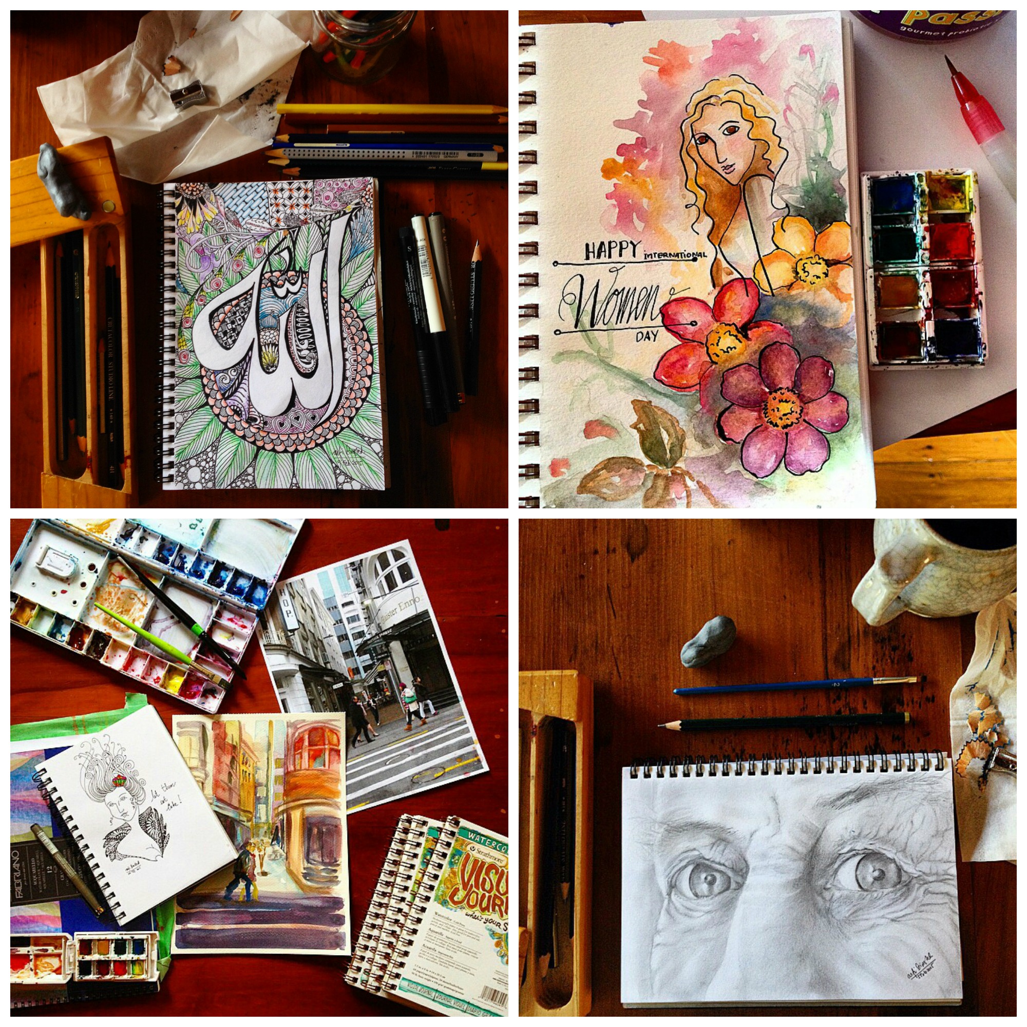 Nah, saya mempergunakan ‘me time’ saya untuk berkarya dan berkreasi di kelas-kelas seni yang saya ikuti. Saat ini saya masih menjadi anggota Life Drawing group di Auckland, dan siswa lukis watercolour di sanggar lukis Franklin Arts Centre, Pukekohe.