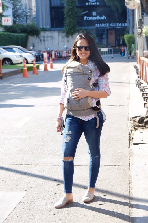 Kondisi pedestrian street di Bangkok tidak semaju di Negara-negara Barat sana; jalanannya tidak rata, banyak lubang dan tidak semua stasiun ataupun terminal untuk kendaraan publik memungkinkan kami menggunakan stroller. Saya mulai menggunankan sling wrap ketika Dhaula berumur 2 minggu, merk saya gunakan adalah Boba, bentuknya kain panjang dengan bahan elastis yang cara penggunaannya harus dililit di badan saya.