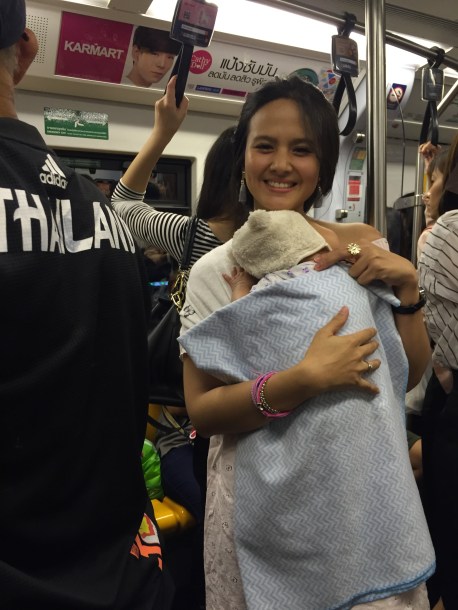 Tips saya untuk yang mau berwisata ke Bangkok, selalu sedia kain untuk menggendong anak, baik itu slingwrap, geos ataupun kain jarik dan atau baby carrier, karena kondisi jalanan dan udara di Bangkok tidak selalu memungkinkan untuk penggunaan stroller, apalagi jika bentuk strollernya adalah heavy weight stroller.
