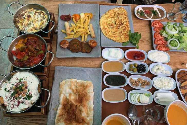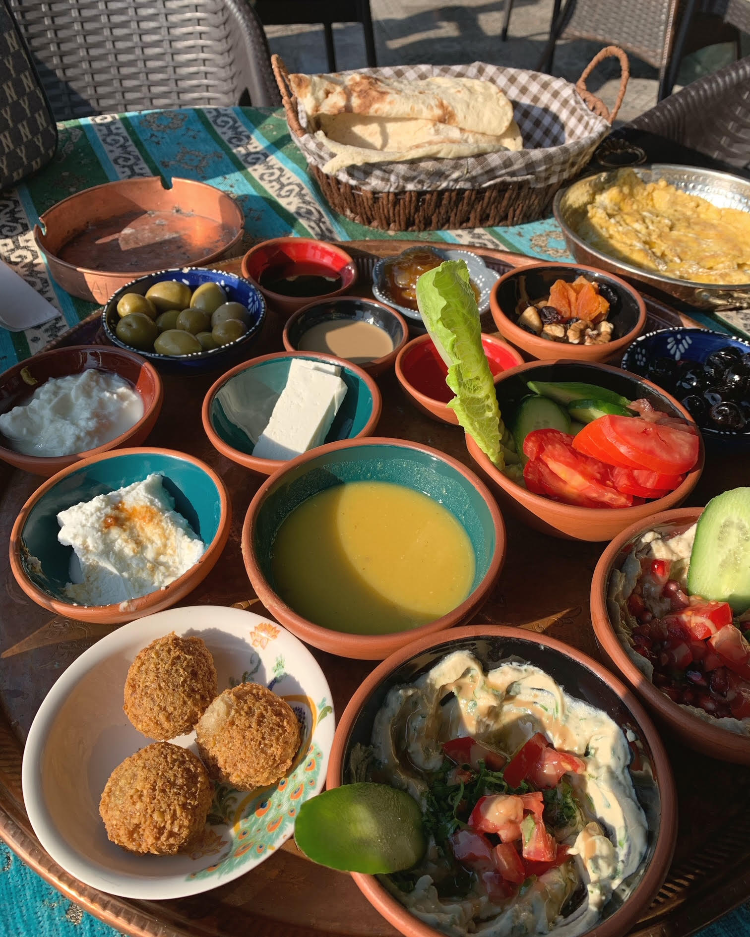 Breakfast for two segini banyak, bukan main! Beragam keju, beragam sayuran, yogurt dips, eggs cooked in various ways, kaymah, madu, dates syrup, falafel, tahini, walnut, zaitun, yogurt, mini pancake, lentil soup, teh dan naan tanpa batas. Habis selesai makan, ditawari kopi turki yang GAK kayak kopi rasanya, seperti susu dikasih banyak kapulaga dan kayu manis plus manis banget. Untung gelasnya cuma secuil ✨ Orang kurdi kalau soal porsi makan emang selalu konsisten no play play!